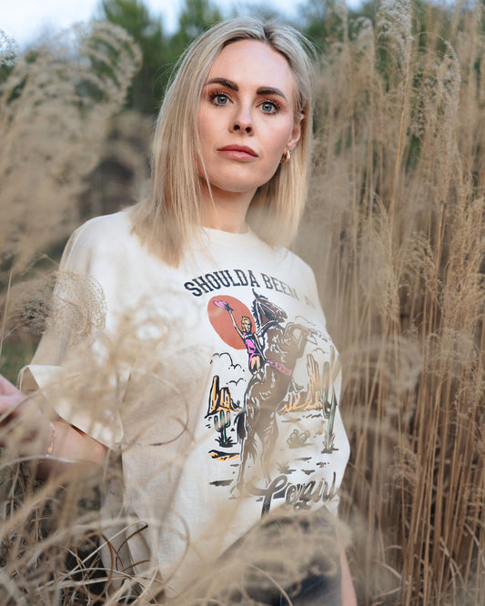 Ladies Take Me to the Ranch Cropped Tee - Mustard